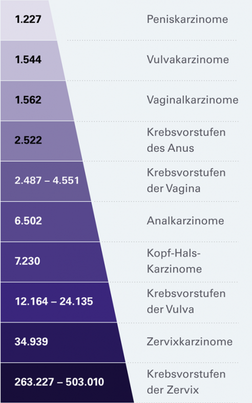 Die Zahlen zeigen, wie viele Menschen in Europa jährlich schätzungsweise von HPV-assoziierten Krankheiten betroffen sind.